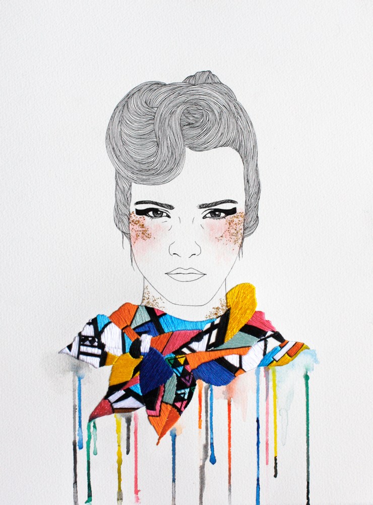 We love how mixed media artist Izziyana has weaved and brought a merger to the worlds of illustrations and embroidery into such a stunning work of art; blurring the lines between craft and fine art, as well as collapsing the boundaries between traditional and popular cultures.