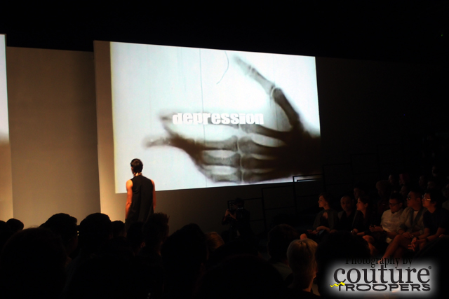 But for the Fall/Winter 2012 collection you’re about to see, there’s actually very little prints. We wanted to show a different side of us, so instead of showing what we can do with print wise, graphic design wise, we wanted to show techniques like multi-functional wearing, so we spent a lot of time working at the details. Plastic surgery is about preceding what you can do on your clothes, to change the look. It’s actually like doing plastic surgery on your clothes.