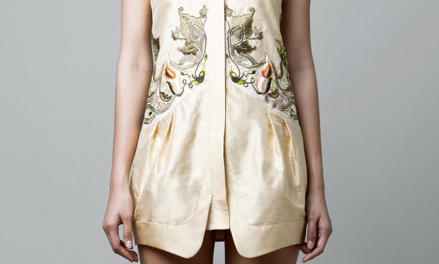 One brand to look out for is none other than TOTON. The edgy, emerging label by Toton Januar from Indonesia, which was just here in Singapore’s Blueprint 2012 Tradeshow in May 2012, has left many breathless and thoroughly intrigued with it’s intrinsic craftsmanship and also, innovation in design in his impeccable method of weaving the traditional Javanese embroidery (an artisanship which originated in Indonesia) into sleek, sculptured modern silhouettes and cuts that indeed, remind me of Alexander McQueen.