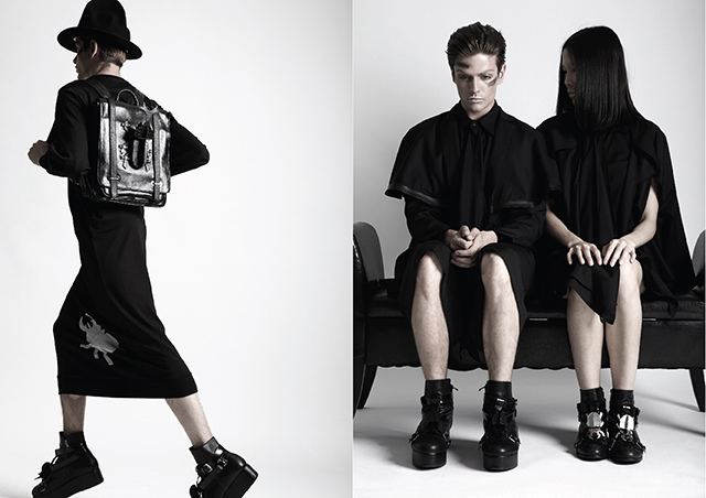 But to designers Kenny Lim and Andrew Loh of Singapore fashion label DEPRESSION, black is a hue that provides one with an obscuring and almost dangerous vibe, especially when transcending the dark side of the human nature. And this is evidential in their new Autumn/Winter 2014 collection, entitled “Dark Nature“.
