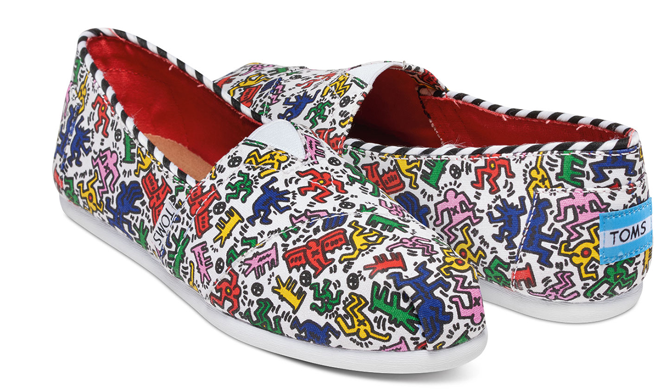 The TOMS + Keith Haring collection will retail exclusively at TANGS Singapore.