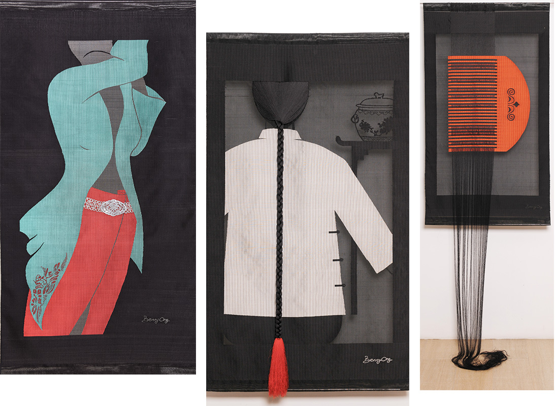 Ong then incorporates them into a series of bold and captivating contemporary hand-woven art that explores the traditional and modern role of women. Notable imageries include that of an Ah Mah and the Peranakan woman.